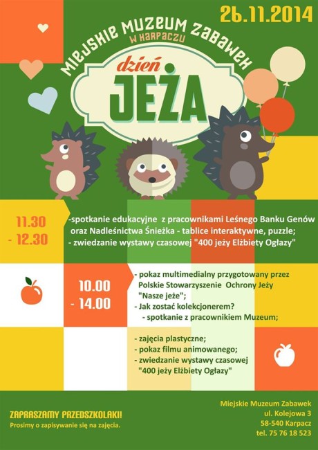 Zaprasza wszystkie przedszkolaki na Dzień Jeża.