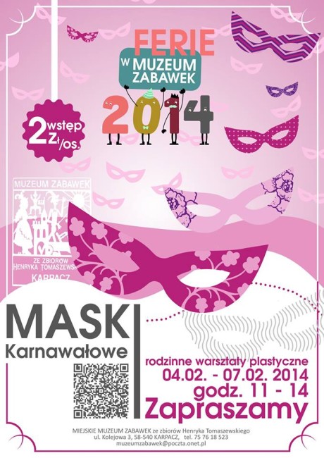 Rodzinne warsztaty plastyczne, tworzenie masek karnawałowych.