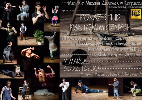 Miejskie Muzeum Zabawek ze zbiorów Henryka Tomaszewskiego zaprasza na Pokaz Etiud Pantomimicznych.