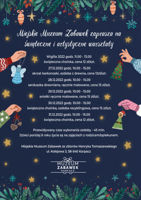 Miejskie Muzeum Zabawek zaprasza na świąteczne i artystyczne warsztaty